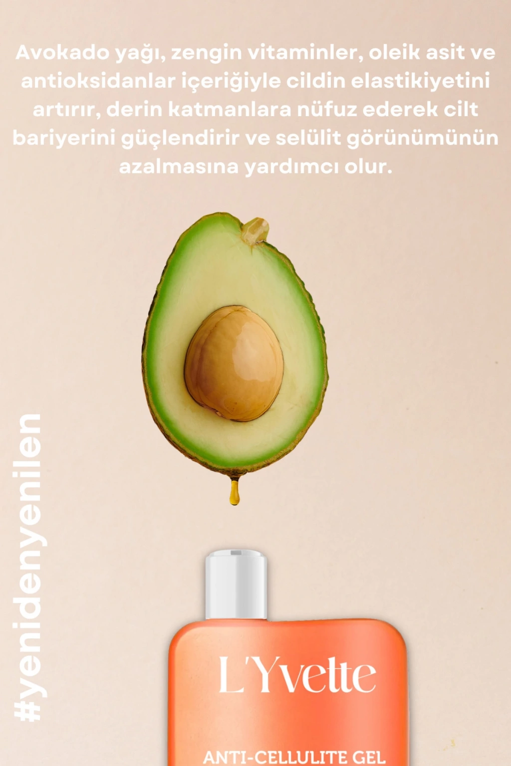 Avokado Yağı İçeren Selülit Jeli: Pürüzsüz ve Canlı Cilt İçin Doğal DestekSelülit, cilt yüzeyinde portakal kabuğu görünümüyle kendini gösteren ve birçok kişinin ortak estetik kaygısı haline gelen bir durumdur. Avokado yağı içeren selülit jeli, cilt bakımında doğal ve etkili bir çözüm sunarak pürüzsüz bir cilt görünümü için yardımcı olur.